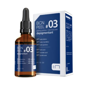 BCN Peel 03 CE es un quimioexfoliante de triple acción: despigmenta, regenera y es antioxidante. Combina tres alfahidroxiácidos (AHAs): ácido